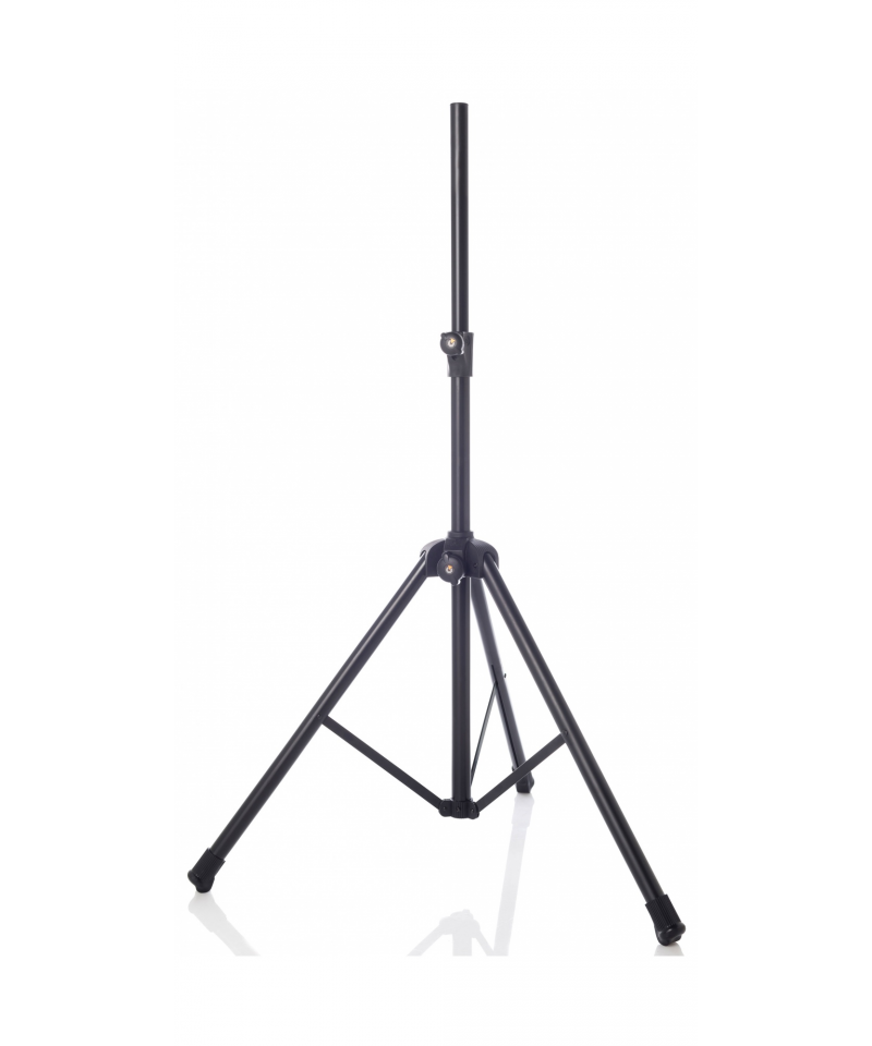 Supporto professionale pneumatico per casse con attacco diametro 35 mm. Realizzato in acciaio ed alluminio per garantire il giusto peso, la massima robustezza e stabilità. Regolazione dell'altezza mediante pulsante automatico e manopola di sicurezza. Blocco centrale, raccordo gambe e valvola pneumatica in nylon caricato. Piedini antiscivolo dalla particolare forma che attenua fortemente la trasmissione delle vibrazioni. Tubo superiore in alluminio con guida antirotazione e fori equidistanti. Robuste gambe in acciaio con particolare fresatura che permette il totale rientro delle barre di raccordo per garantire sicurezza ed ingombro ridotto.