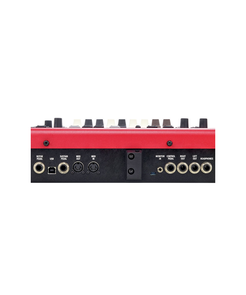 - Connessioni: 2 uscite audio L&R (jack da 6,35mm), ingresso monitor (3,5mm), uscita cuffie (6,35mm), ingressi per pedale sustain, controllo e footswitch, MIDI In/Out (DIN 5-pin), USB tipo B per trasferimento suoni e MIDI.