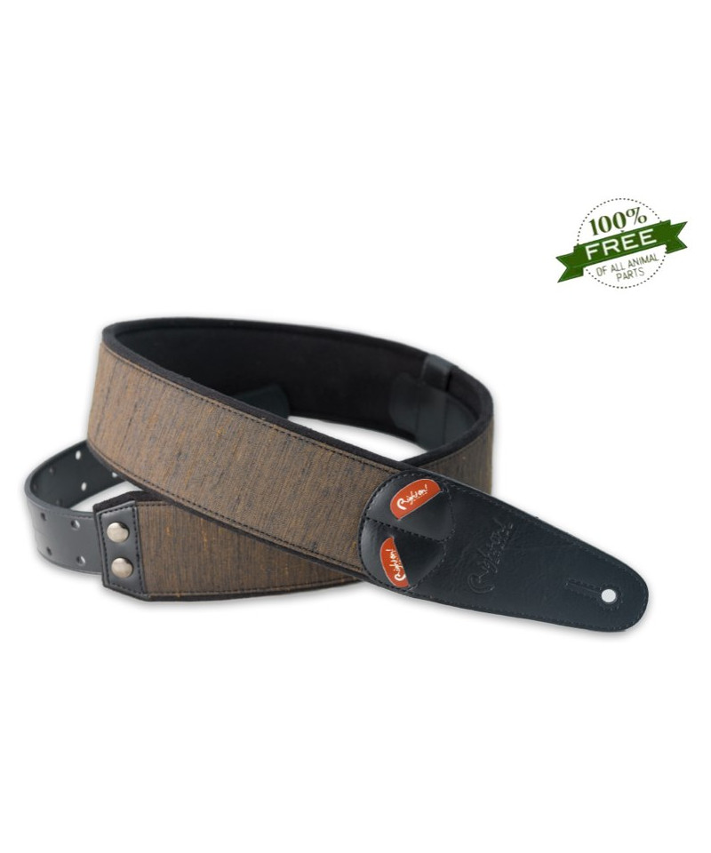 Tracolla realizzata in modo artigianale con materiali ecologici ad alta tecnologia rispettosi dellambiente e priva di qualsiasi tessuto animale, caratterizzata da finiture curate in ogni dettaglio, decorazioni uniche, imbottitura in lattice ad alta densità (5 mm), sistema di regolazione RAS, porta plettri incorporato. Colore nero / marrone, larghezza 6 cm, lunghezza regolabile da 95 cm a 143 cm, ultra leggera. Indicata per chitarra e basso.