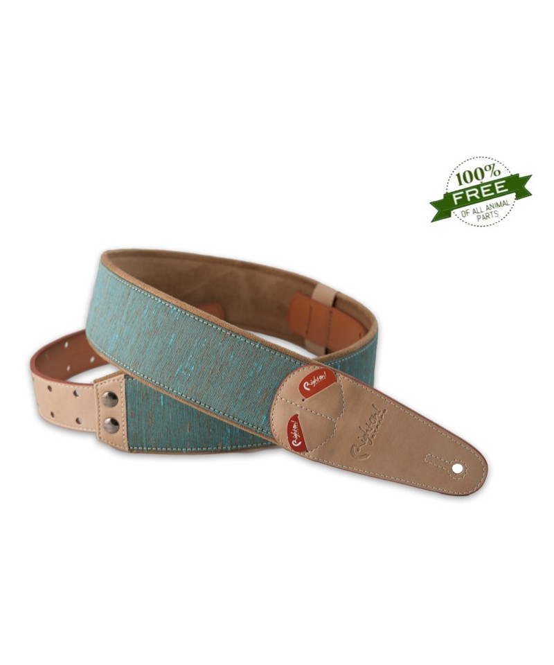 Tracolla realizzata in modo artigianale con materiali ecologici ad alta tecnologia rispettosi dell'ambiente e priva di qualsiasi tessuto animale, caratterizzata da finiture curate in ogni dettaglio, decorazioni uniche, imbottitura in lattice ad alta densità (5 mm), sistema di regolazione RAS, porta plettri incorporato.