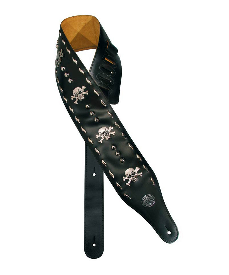 Tracolla per chitarra, larghezza 10 cm, colore nero con teschi.