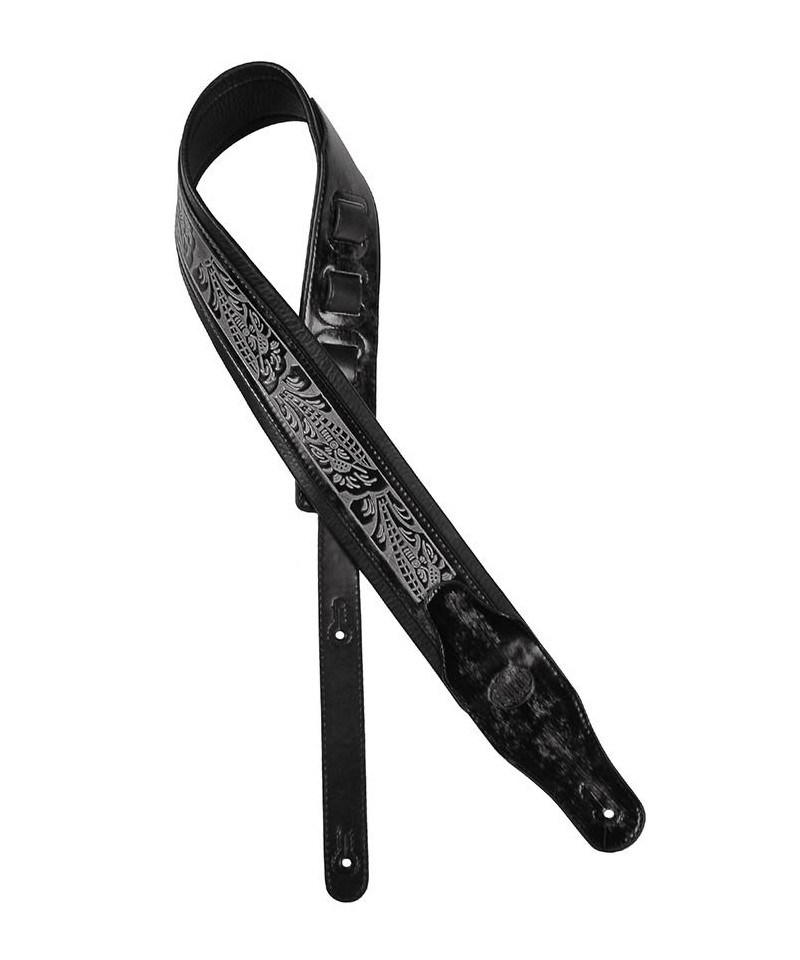 Tracolla per chitarra, in pelle, nera