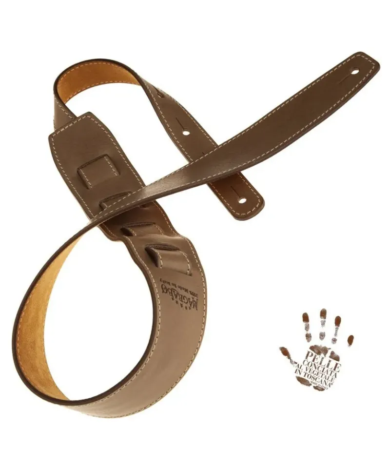 La linea di tracolle per chitarra e basso Magrabò Holes sono dotate del classico sistema di regolazione ad “asole” privo di fibbie e parti metalliche é caratterizzata sono disponibili nelle larghezze 6, 8 e 10 cm. Sono dotate del classico sistema di regolazione ad “asole” privo di fibbie e parti metalliche e grazie alle 8 asole e al distanziamento dei fori terminali della coda, offrono ottime possibilità di regolazione con step di 2 cm. Realizzata con pellami di prima qualità, Italian Design, stile pulito e originale, la tracolla è leggera e morbida. Grazie alla Pelle in Concia al Vegetale, certificata dal Consorzio Toscano Vera Pelle, la tracolla si adatta alla forma della tua corporatura in maniera naturale, donando ottima ergonomia ed un elevato comfort OnStage. Le tracolle con finitura Core sono realizzate utilizzando pelle bovina di alta qualità con Concia al Vegetale in Toscana Certificata. Questi pellami sono conciati con il tradizionale metodo al Vegetale, un processo basato sull’utilizzo di tannini naturali provenienti dagli alberi, sulle nuove tecnologie e sul lento scorrere del tempo. Il risultato finale é di un livello qualitativo ed estetico molto elevato, accompagnato da un sorprendente comfort on stage Queste tracolle sono estremamente morbide e confortevoli, assicurano al musicista ore continuate di performance senza sforzi particolari e interessanti abbinamenti cromatici del look on stage. I modelli segnalati con il simbolo della mano aperta sono realizzati con Pelle Conciata al Vegetale in Toscana. 100% Hand Made in Italy, ogni pelle è lavorata a mano con tradizionali tecniche artigianali.