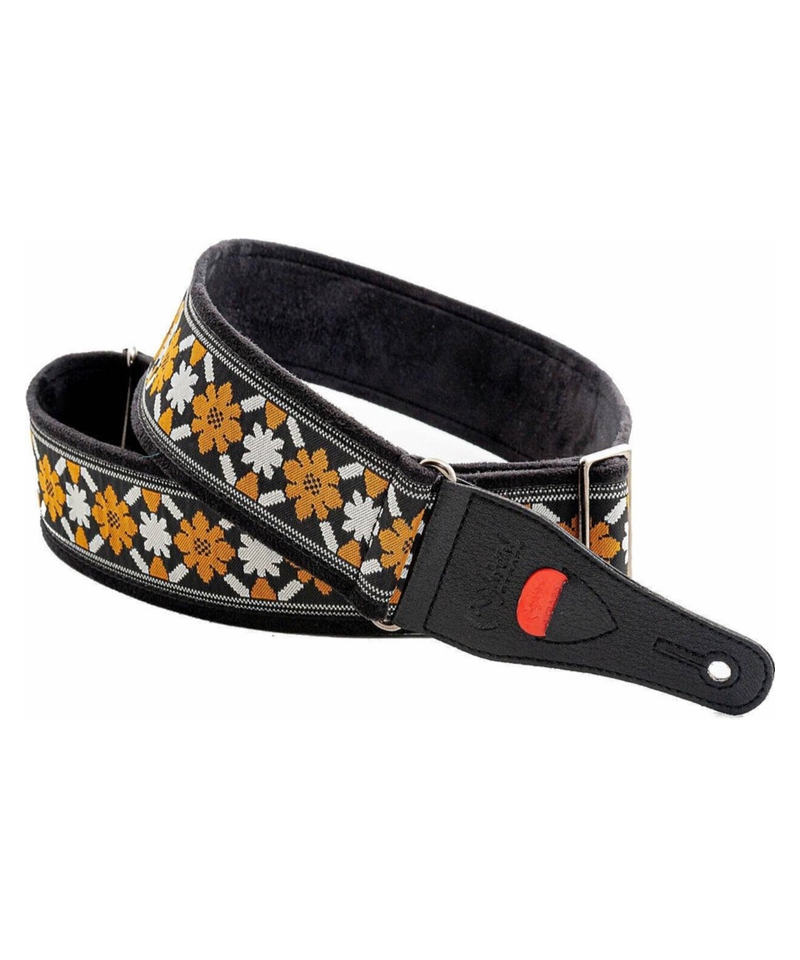 Colore nero con decorazioni colorate, larghezza 6 cm, lunghezza regolabile da 90 cm a 153 cm. Indicata per chitarra e basso.