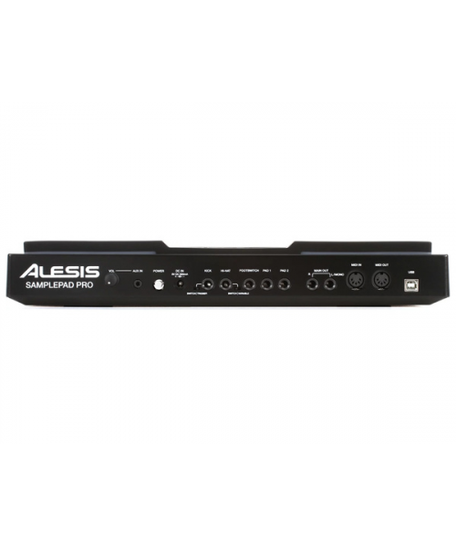 Pad percussivo in gomma ad 8 zone (di cui 6 ampie) retroilluminate da led di colore blu, dotato di 10 kit pronti alluso basati su una wavetable integrata da 200 suoni di batteria, piatti e percussioni accessibile e suonabile anche via MIDI. Oltre ai suoni integrati, potrai caricare sui pad i tuoi campioni audio preferiti (max 20 kit) usufruendo di una card SD (opzionale) inseribile nellapposito slot e gestibile via USB. Potrai espandere il sistema percussivo collegando due ulteriori trigger pad e sfruttare le connessioni kick e hi-hat trigger/switch presenti nel retro. Il display LCD e un editor software consentiranno una programmazione semplificata. Le connessioni audio dellAlesis SAMPLEPAD PRO comprendono: stereo out (L/R) su connettori Jack da , uscita cuffia su Jack TRS da e ingresso audio ausiliare su mini jack TRS da 1/8.Oltre alla porta USB sono presenti connessioni MIDI In & Out in formato DIN.