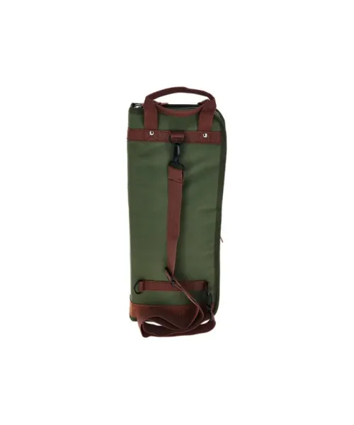 Custodia per bacchette, mallet, spazzole e simili, fino a 12 paia. Dotata di due ganci per ancorare la custodia al timpano, tasche interne ed esterne per gli accessori, maniglia e tracolla per il trasporto. Colore Moss Green con Colori marroni